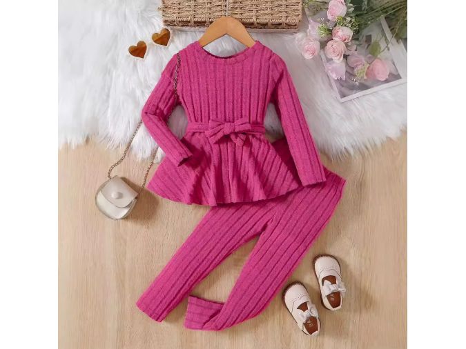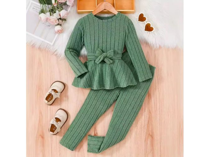 Upgrade your boutique collection with this stylish ribbed knit 2-piece girls outfit at unbeatable wholesale prices! This cozy and elegant set features a long sleeve peplum top with a charming bow detail and matching fitted pants – perfect for fall and winter fashion. Made from soft, stretchable fabric, it provides warmth and comfort without compromising on style. Ideal for everyday wear, family outings, or festive gatherings. Great for retailers and bulk buyers looking for high-quality kidswear at wholesale rates.