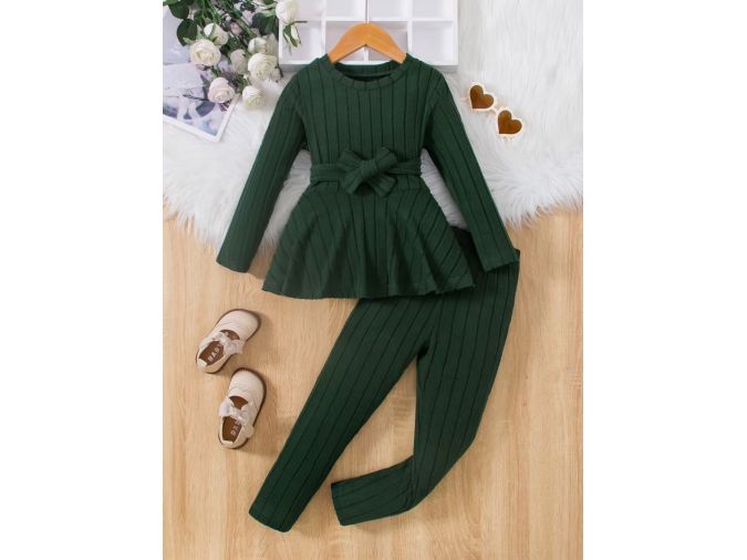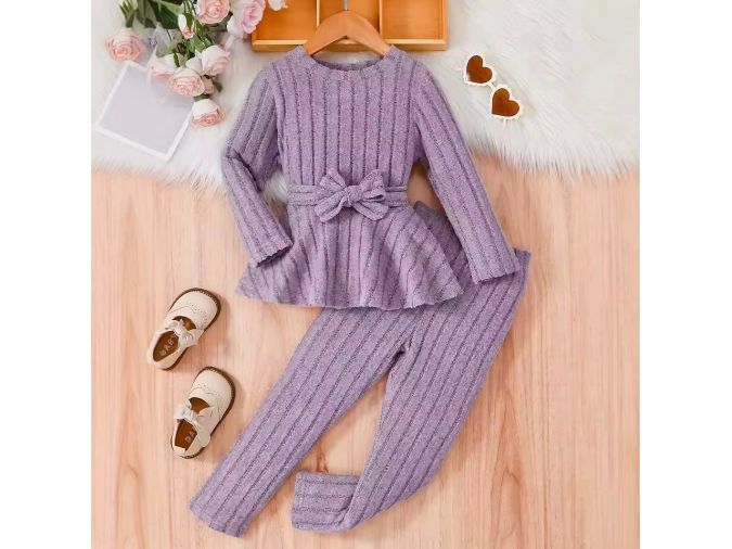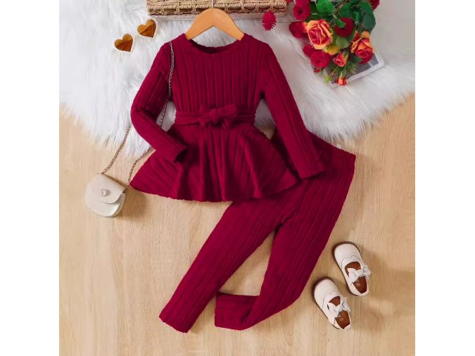 girls 2-piece set wholesale, ribbed knit kids outfit, peplum top with pants, winter kids clothing, bow detail girl outfit, toddler boutique clothes, wholesale children’s fashion, warm girls set, fall fashion for kids