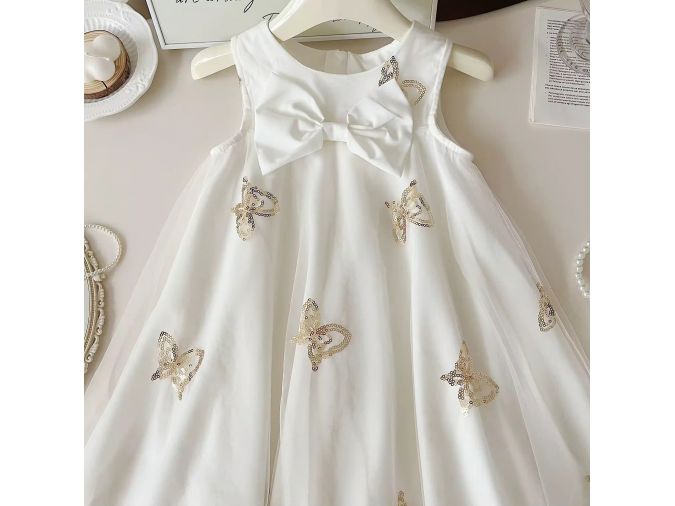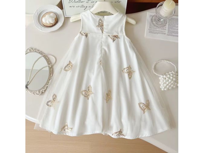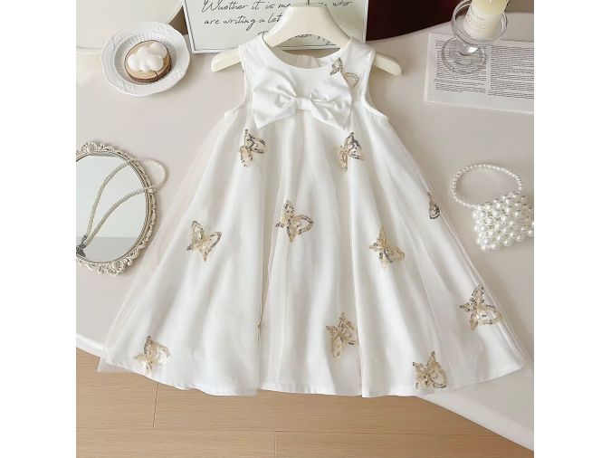 Delight your customers with this stunning sleeveless white girls dress featuring delicate butterfly embroidery and a charming front bow—available at unbeatable wholesale prices! Perfect for weddings, birthdays, or any special occasion, this flowy and elegant party gown is crafted from soft, lightweight fabric that ensures comfort and grace. The subtle shimmer of the butterfly embellishments adds a magical touch that little girls will love. Ideal for boutique owners and bulk buyers seeking high-quality kids fashion at wholesale rates.