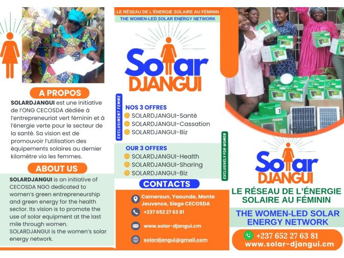 SOLARDJANGUI est une initiative de l’ONG CECOSDA qui développe le réseau de l’énergie solaire au féminin pour faire avancer l’accès à l’énergie propre dans les villages, les associations de femmes et les petites structures de santé.